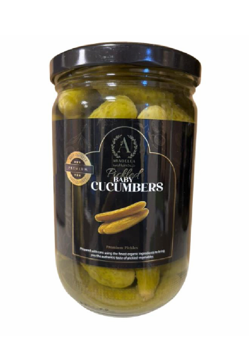 Product Name: Pickled Baby Cucumbers •Net Weight: 660 g •Packaging: 12 jars per carton•Quantity: 58 cartons